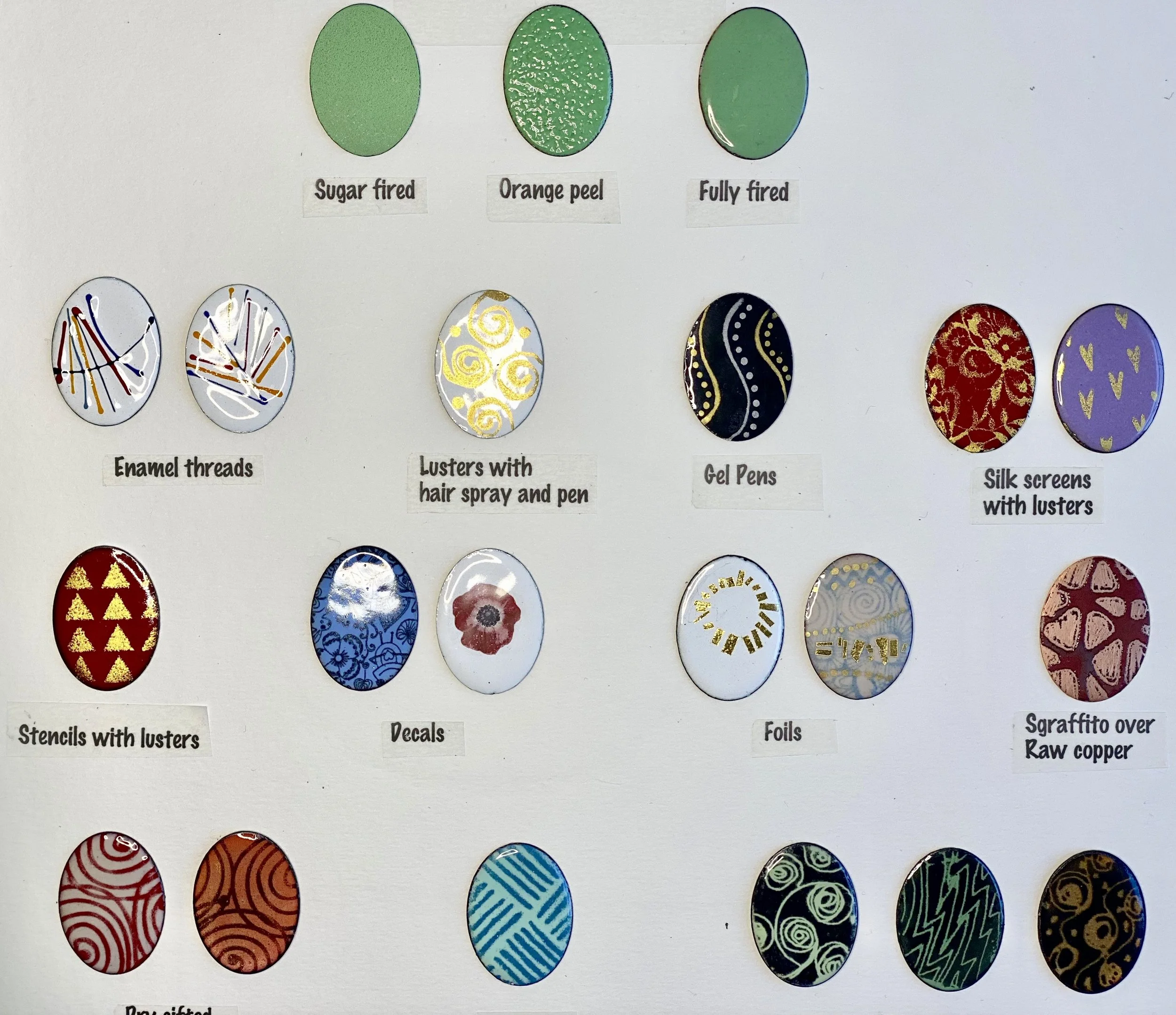 I teach an Enameling Basics class each semester class at Silverwork’s Studio in Echo Echo Park. Emphasis is on learning proper techniques and how to embellish. Students leave with beautiful jewelry they’ve created.